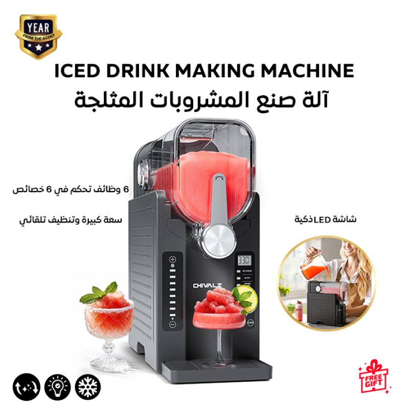 استمتع بالمشروبات الباردة والمنعشة في بيتك بكل سهولة! آلة سلاش مبتكرة بـ 6 إعدادات ذكية لتحضير العصائر، السموثي، الفرابيه، الميلك شيك والكوكتيلات.